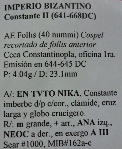 Bizantina Imperio Bizantino Moneda Ae Follis 644-645 Constante II A621