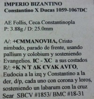 Bizantina Moneda Bizantina Ae Follis 1059-1067 DC Constantino X Ducas