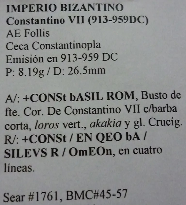 Bizantina Moneda Imperio Bizantino Ae Follis 913-959 DC Constantino VII