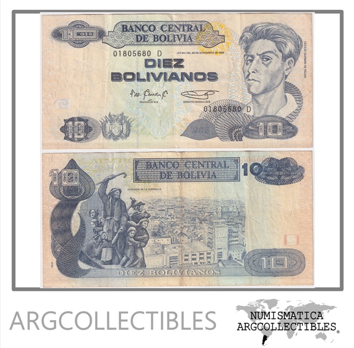 Bolivia Billete 10 Bolivianos 1986 P-218 VF+ (Serie D)