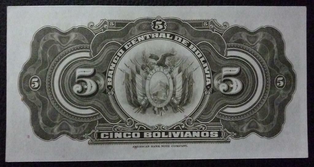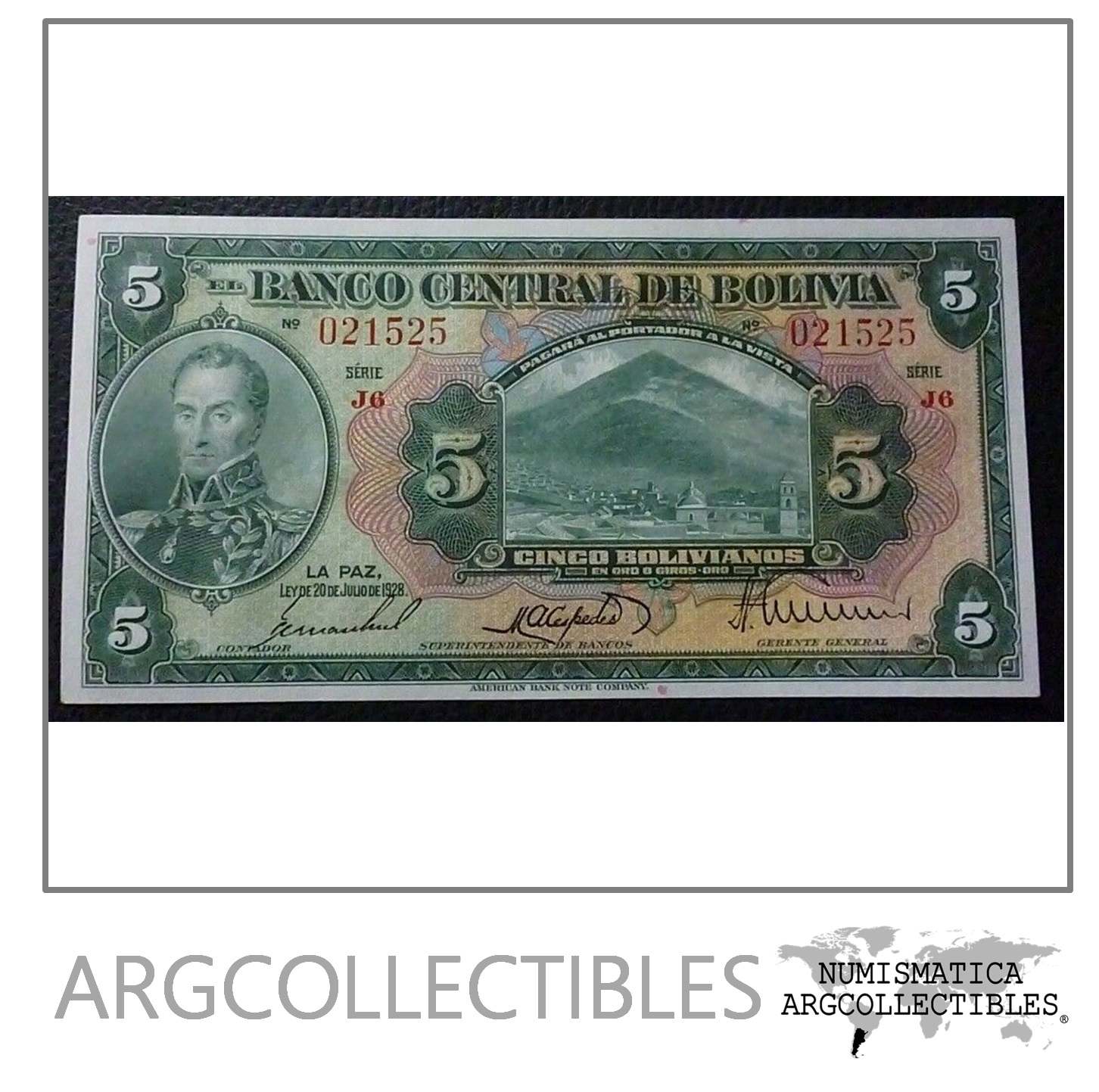BOLIVIA Billete 5 Bolivianos, Pick 120 UNC 1928 (Series J6)