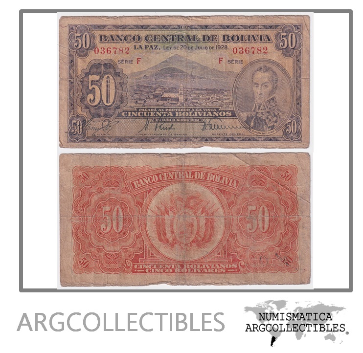 Bolivia Billete 50 Bolivianos 1928 P-132 F- (Serie F)