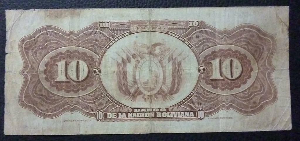 Bolivia Billlete 10 Bolivianos, Pick 114 F- 1911(1929) (Banco Central) A