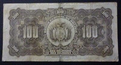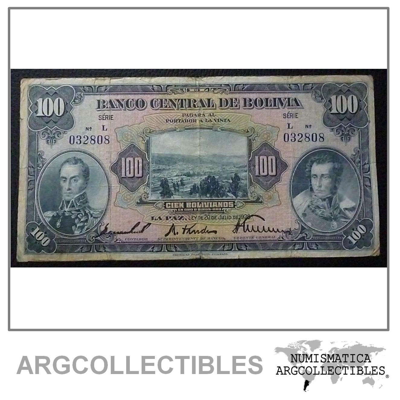 Bolivia Billlete 100 Bolivianos, Pick 125 F+ 1928 (Series L)