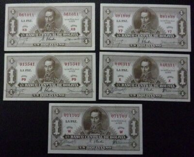 BOLIVIA Lote X 26 Billetes 1 Boliviano, Pick 128a, XF+/UNC, 1928 (Diferentes Series)