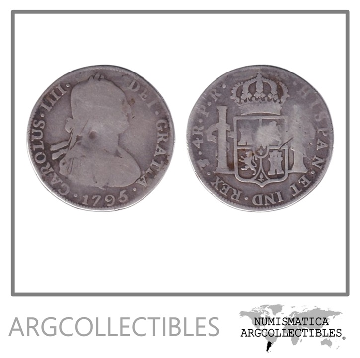 Bolivia Moneda 4 Reales 1795 PR Plata Carlos III KM-72/CJ-77.7.2 F