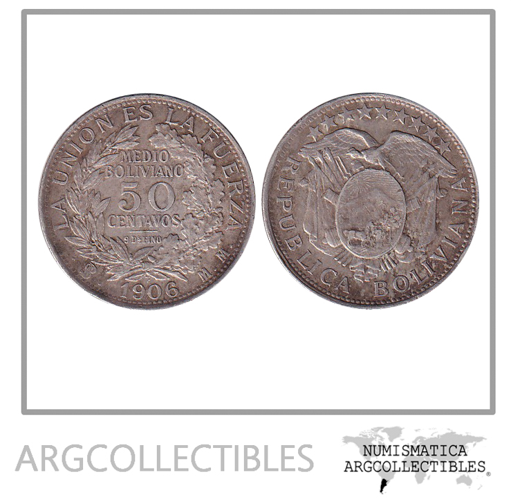 Bolivia Moneda 50 Centavos 1906 MM Plata 900 KM-175.1 XF
