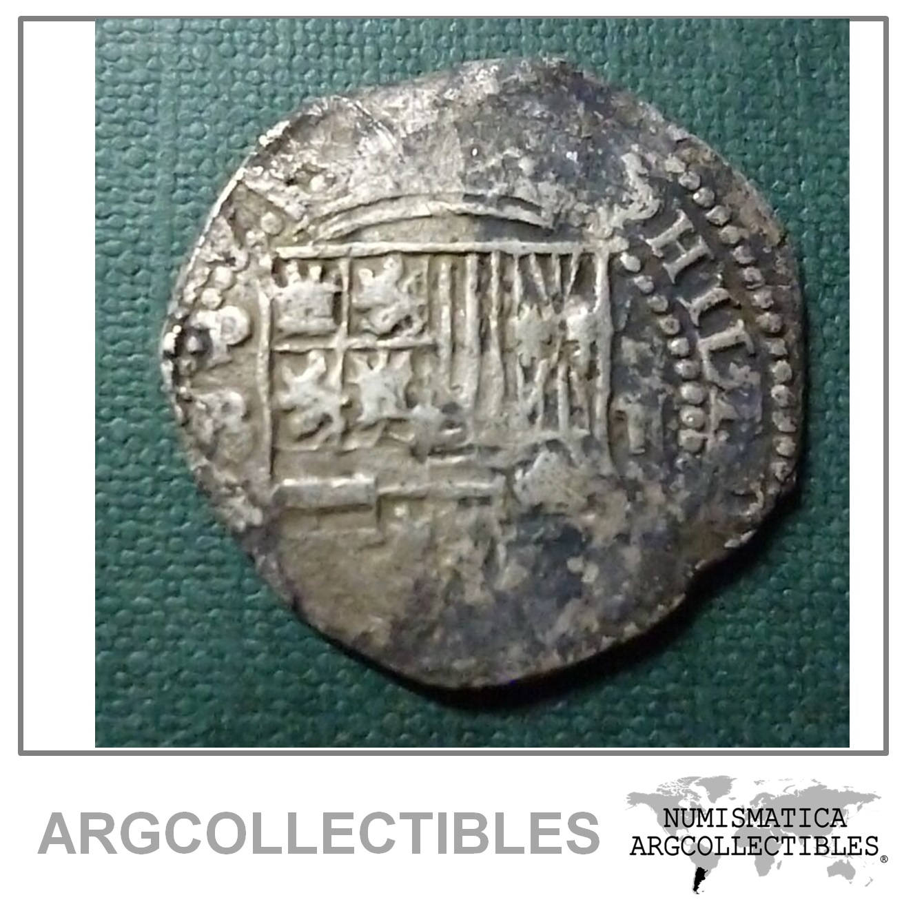 BOLIVIA Moneda de Plata COB MACUQUINA 2 Reales, KM3.2, 1574-1576 PR (Potosi)