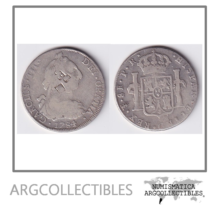 Bolivia (Potosi) Moneda 8 Reales 1784 P.R Carlos III Contramarca / Plata KM-55/CJ-63.13.4 VF