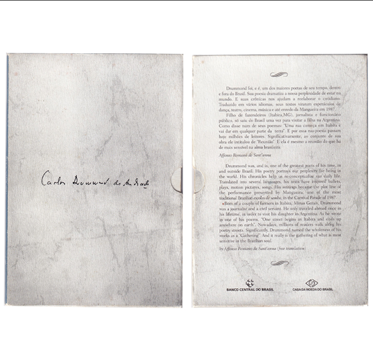 Brasil Blister Moneda 2 Reais 2002 Carlos Drumond Plata 999 KM-657 Proof