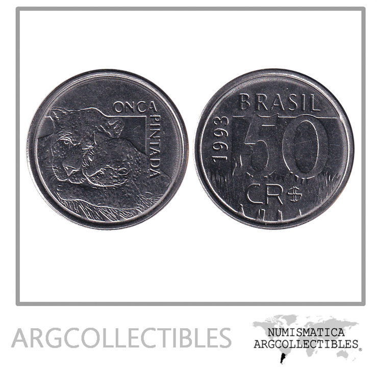 Brasil Moneda 50 Cruzeiros 1993-1994 Niquel Jaguar AU