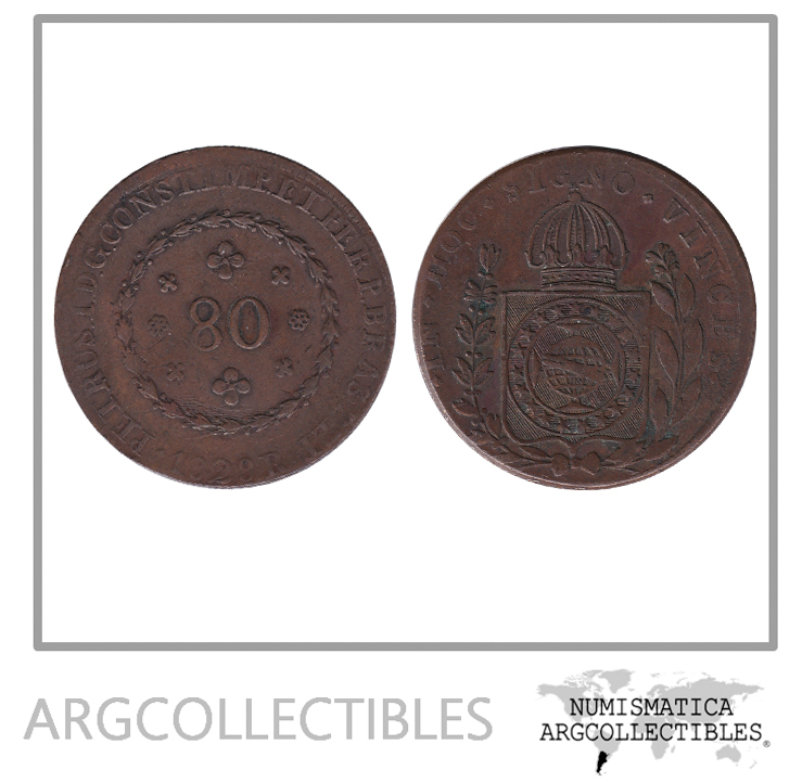 Brasil Moneda 80 Reis 1828 R Cobre Pedro I KM-366.1 VF+