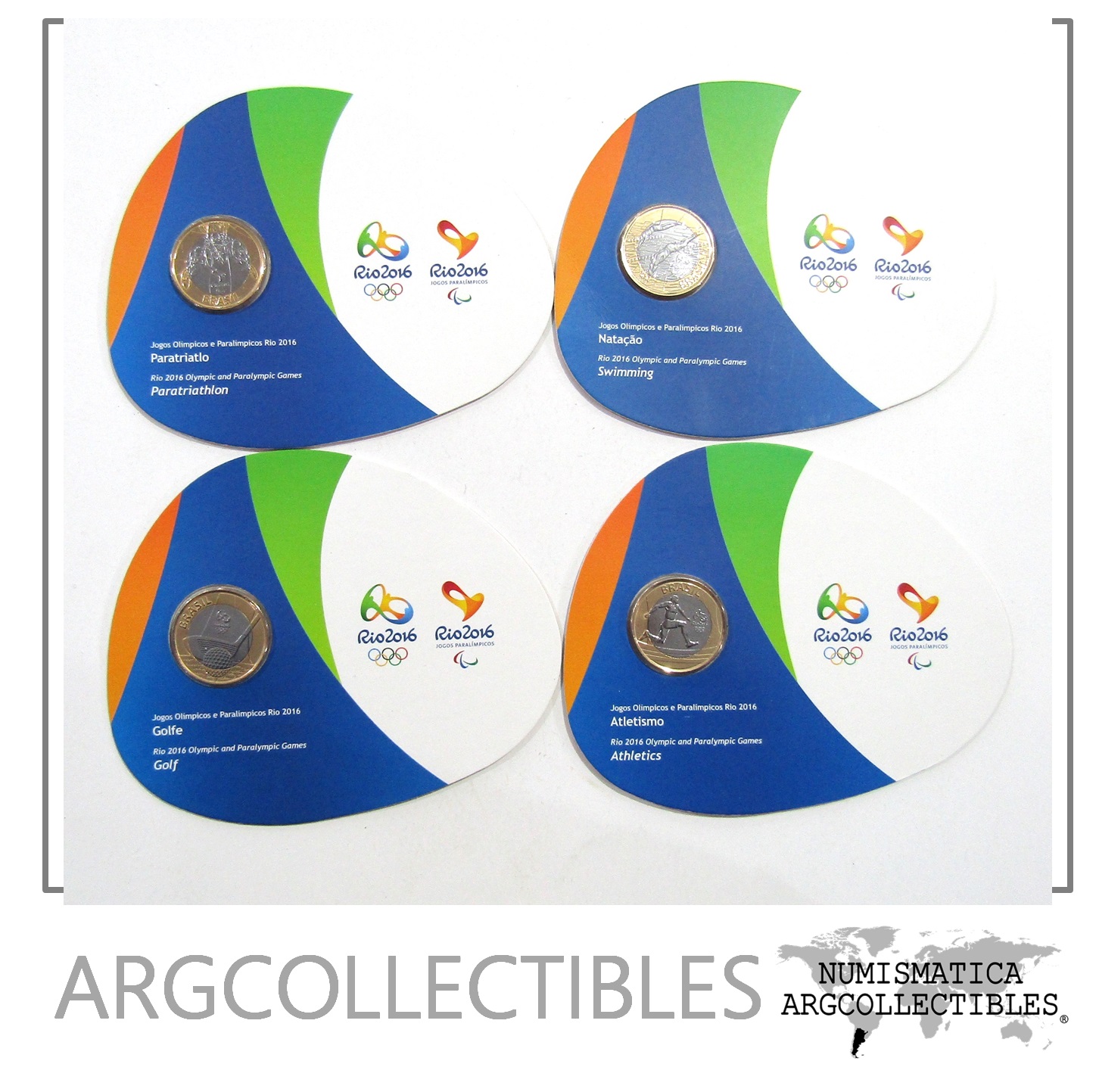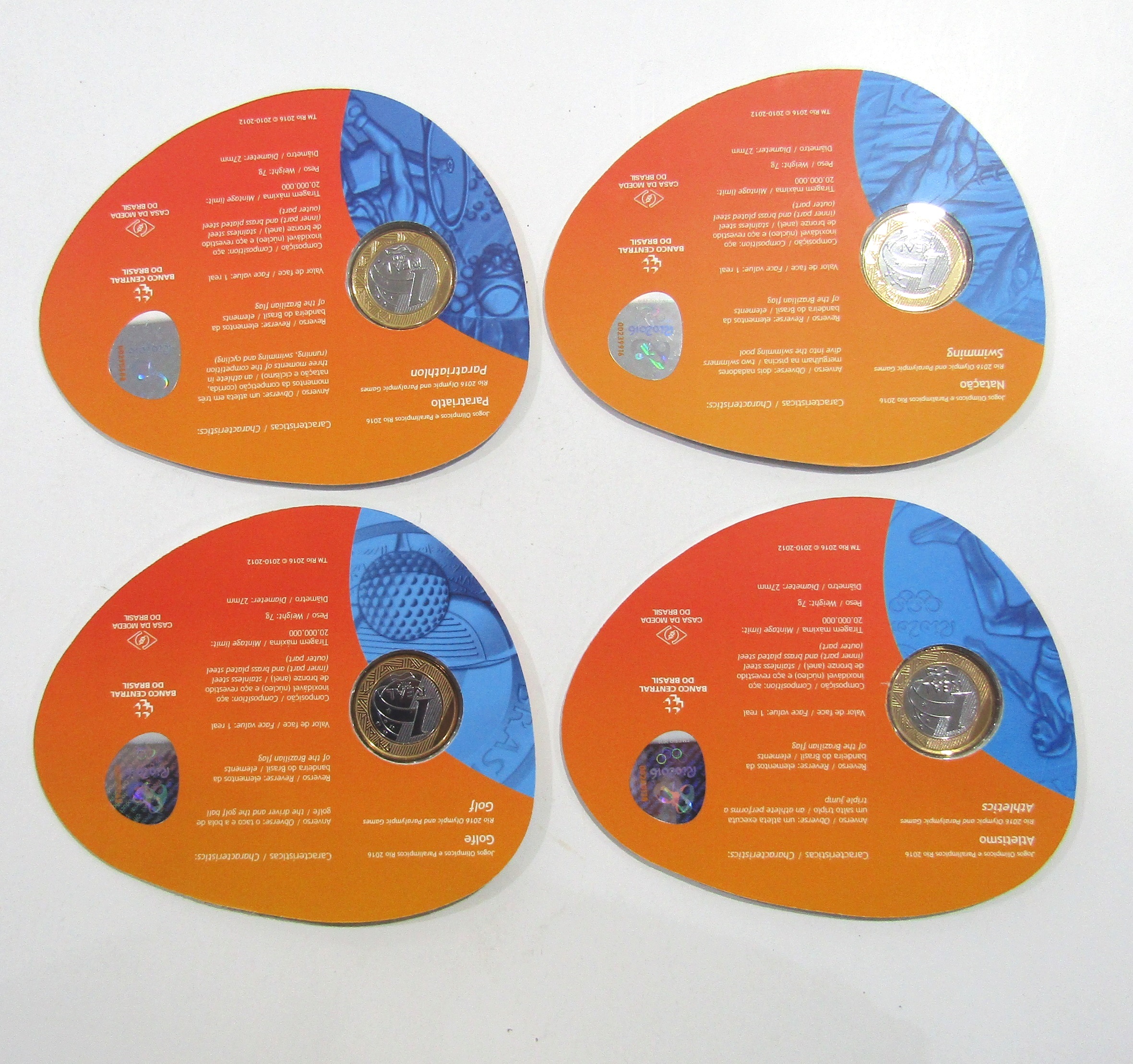 Brasil SET x 4 Bimetalica BLISTERS Moneda 1 Real UNC 2014 – Rio 2016 Juegos Olimpicos