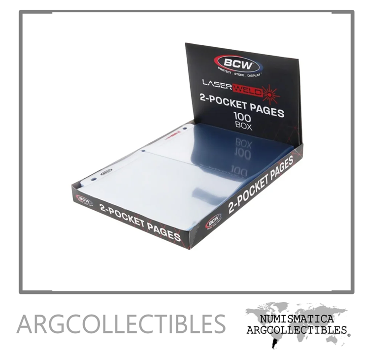 Caja x 100 Hojas Premium Para Billetes Marca BCW Libres PVC Y Acidos 2 Espacios