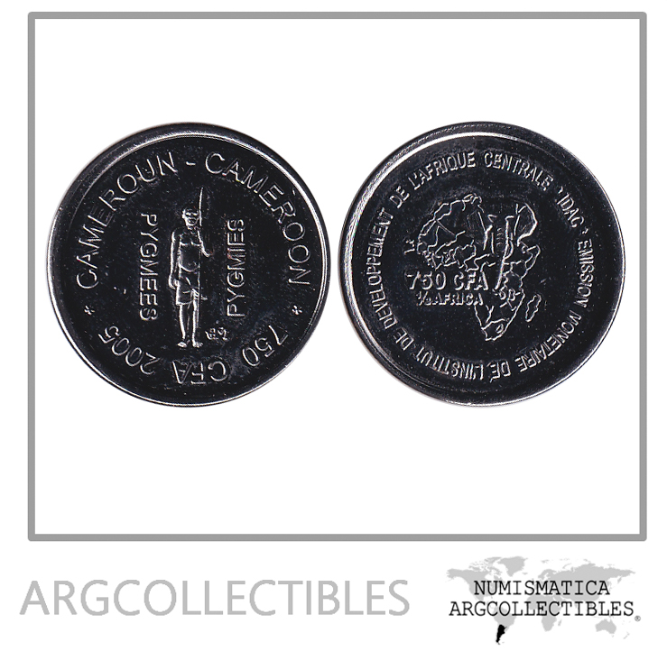 Camerun Moneda 750 CFA 2005 Niquel Indio Pigmeo UNC