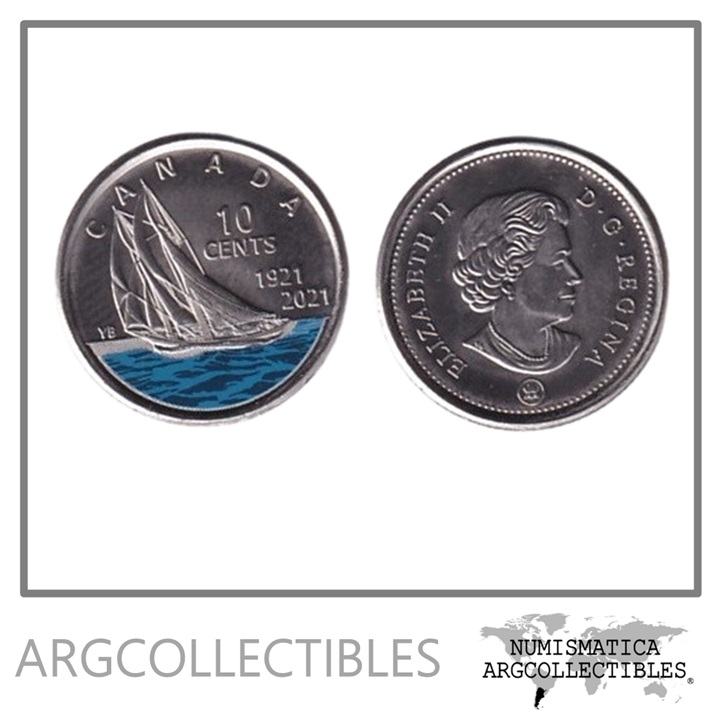 Canada Moneda 10 Centavos 2021 / 100 Aniversario Bluenose Acero Color UNC