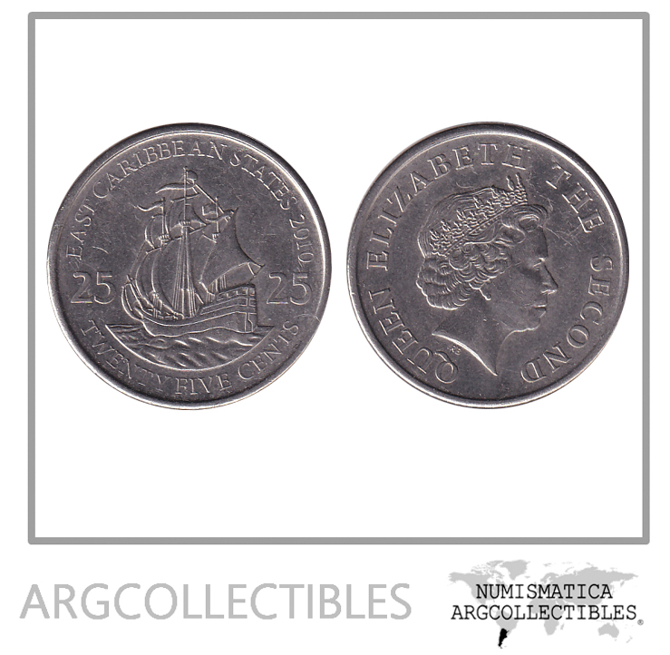 Caribe del Este Moneda 25 Centavos 2010 Niquel Barcos UNC