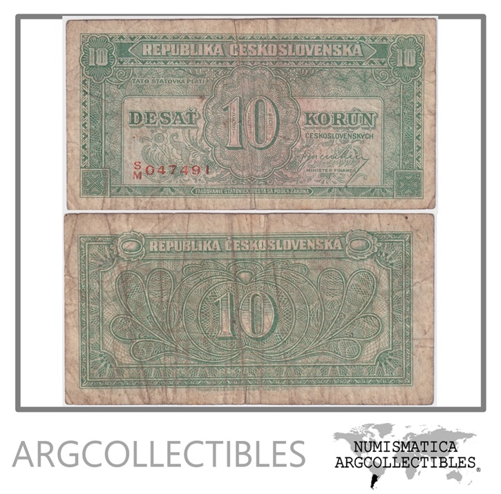 Checoslovaquia Billete 10 Korun 1949 P-69 F+