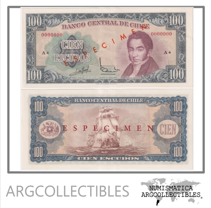 Chile Billete 100 Escudos 1962 P-141s UNC (Specimen)