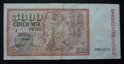 CHILE Billete 5000 Pesos, Pick 155g VF+ 2008 (Reposicion)