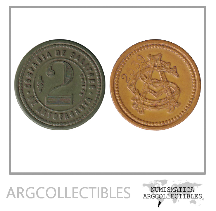 Chile Ficha Token 2 Pesos Bakelita Salitrera Compañia Antofagasta