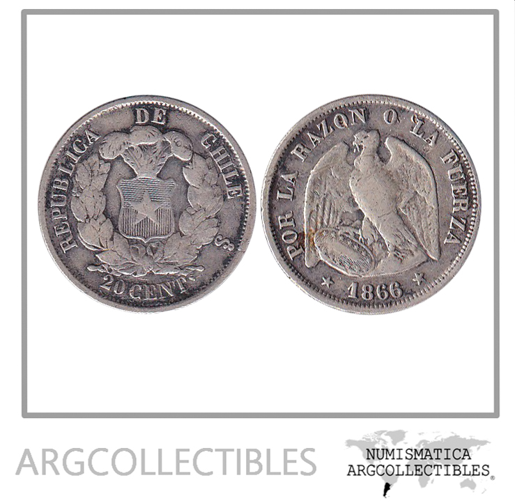 Chile Moneda 20 Centavos 1866 Plata KM-135 VF