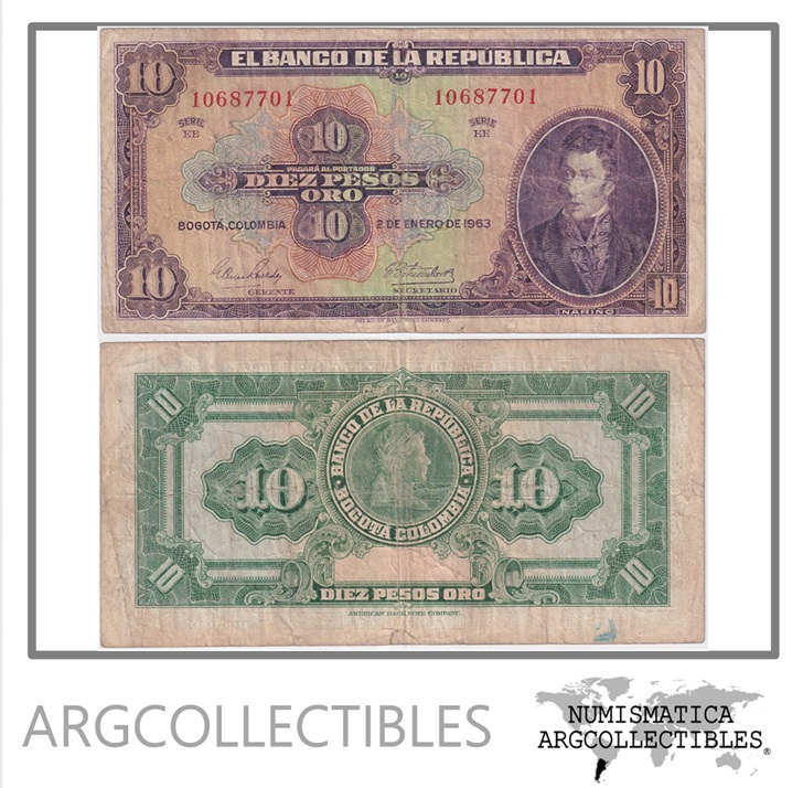 Colombia Billete 10 Pesos 1963 P-389F F+