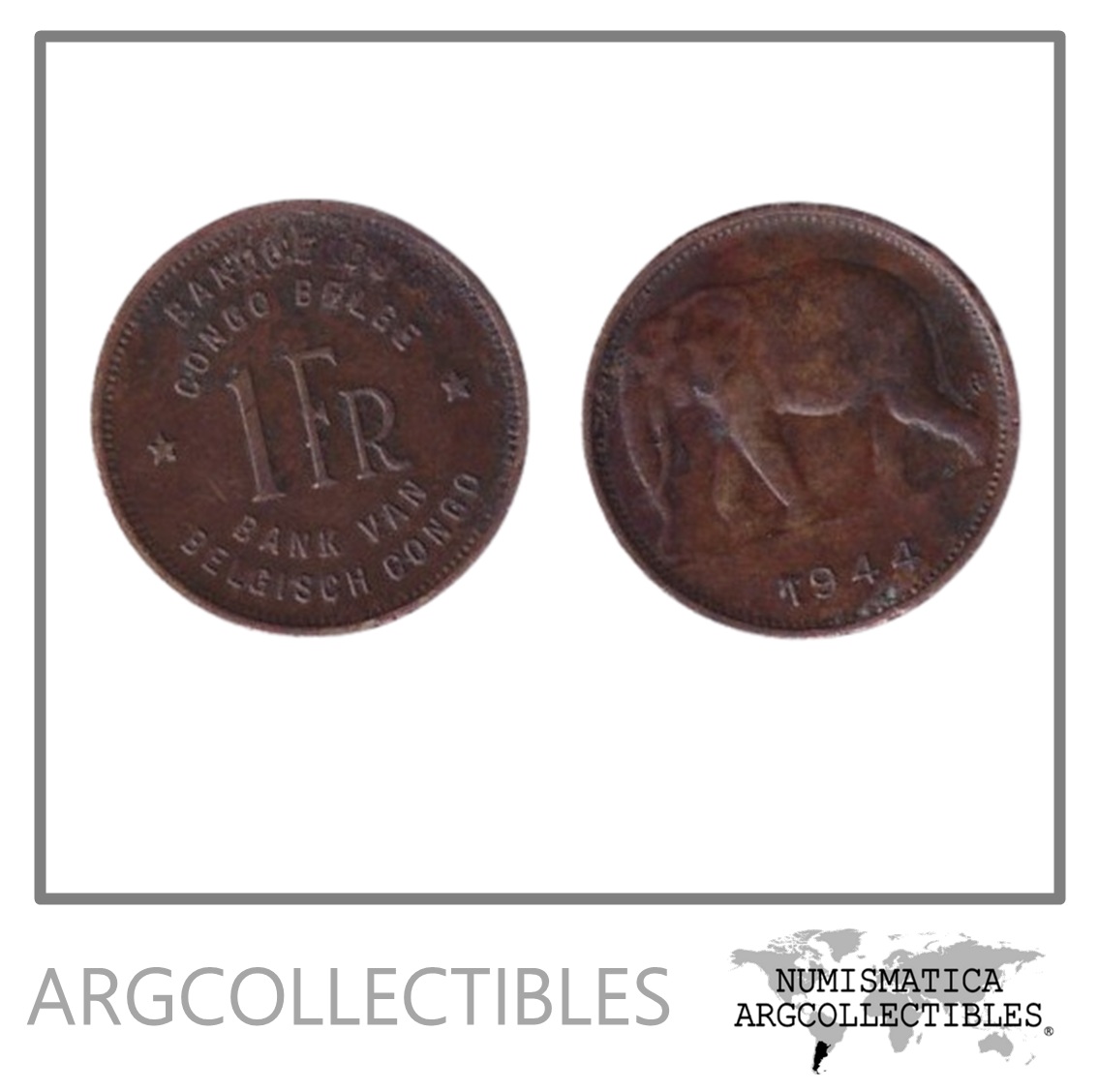 Congo Belga Moneda 1 Franco 1944 Elefante Laton KM-26 XF