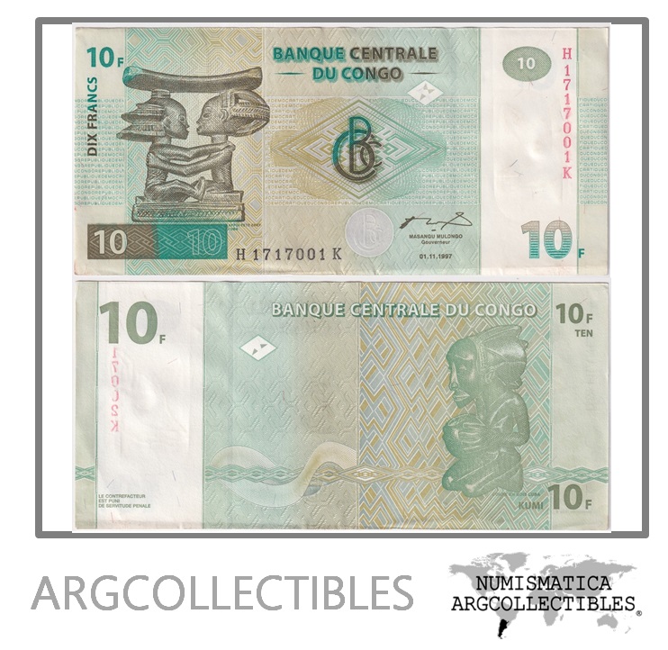 Congo Billete 10 Francos 1997 P-87b AU