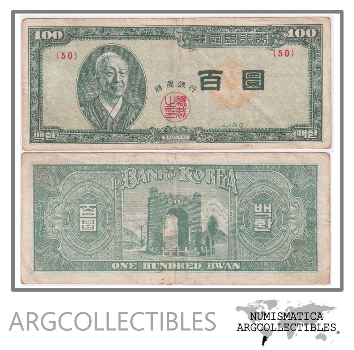 Corea del Sur Billete 100 Hwan 1955 P-19b VF