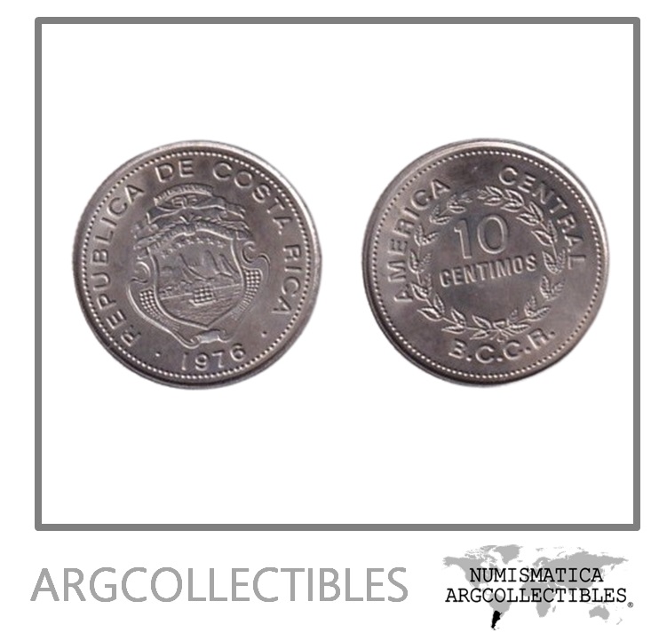 Costa Rica Moneda 10 Centimos 1976 Niquel KM-185.2 UNC