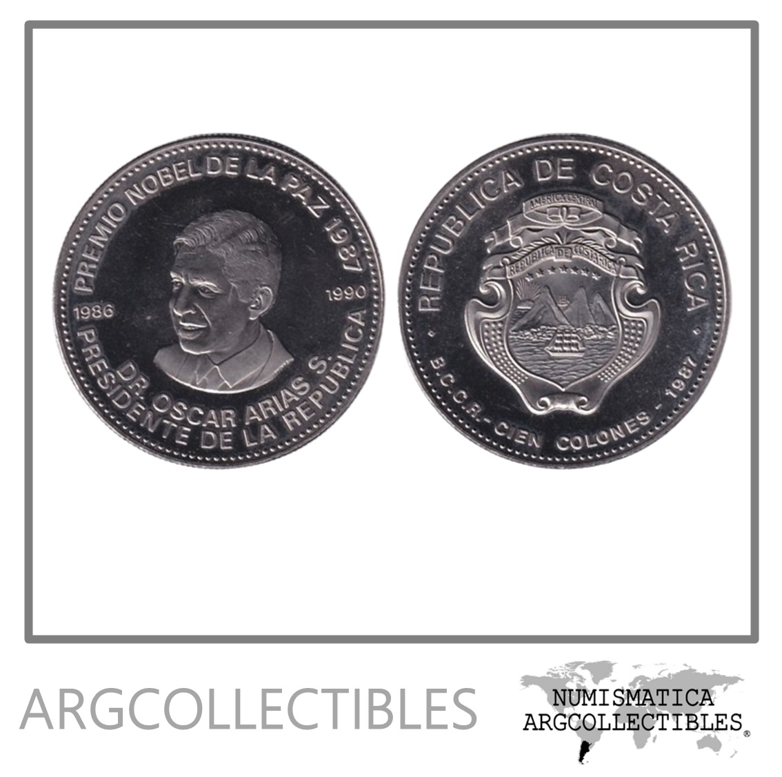 Costa Rica Moneda 100 Colones 1987 Niquel Oscar Arias KM-224 Proof