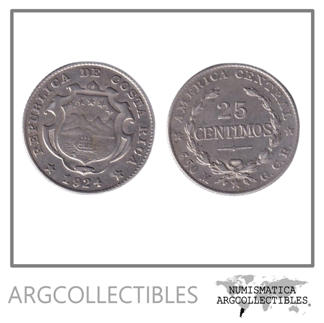 Costa Rica Moneda 25 Centimos 1924 Plata 650 KM-168 XF