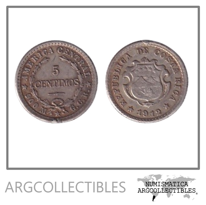 Costa Rica Moneda 5 Centimos 1912 Plata 900 KM-145 AU (Soldada)