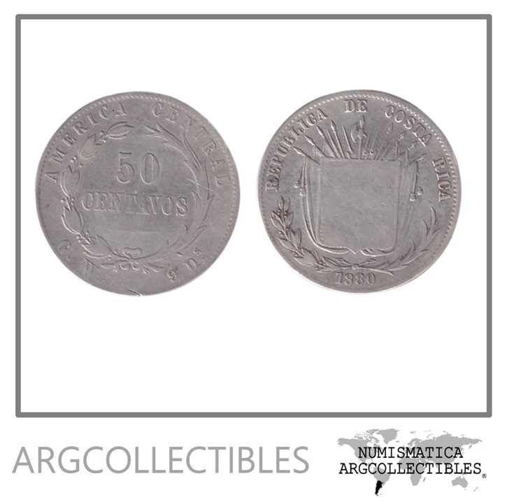 Costa Rica Moneda 50 Centavos 1880 Plata 900 KM-124 VF-
