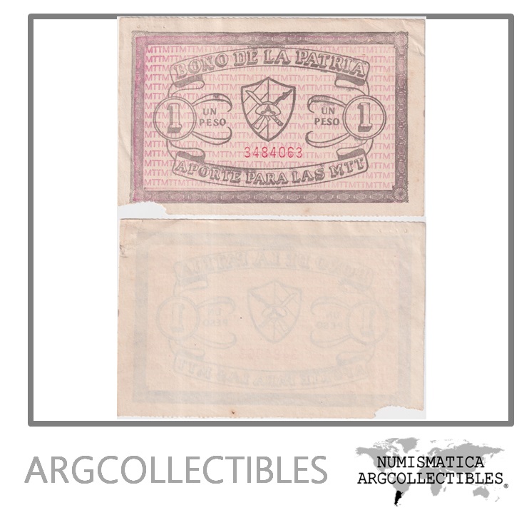 Cuba Billete 1 Peso 1980 Bono Dia de la Patria Aporte MTT AU (Roto)