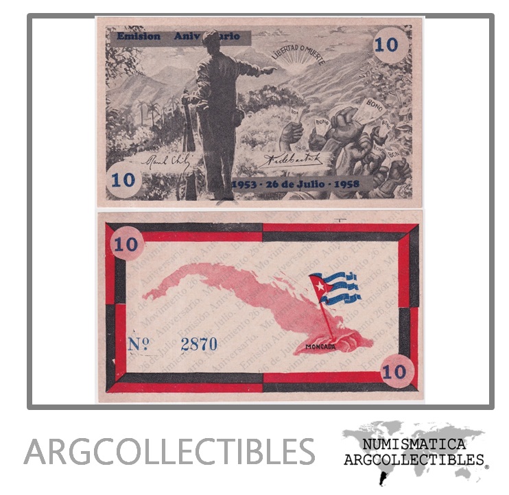 Cuba Billete 10 Pesos 1958 Bono 26 de Julio UNC