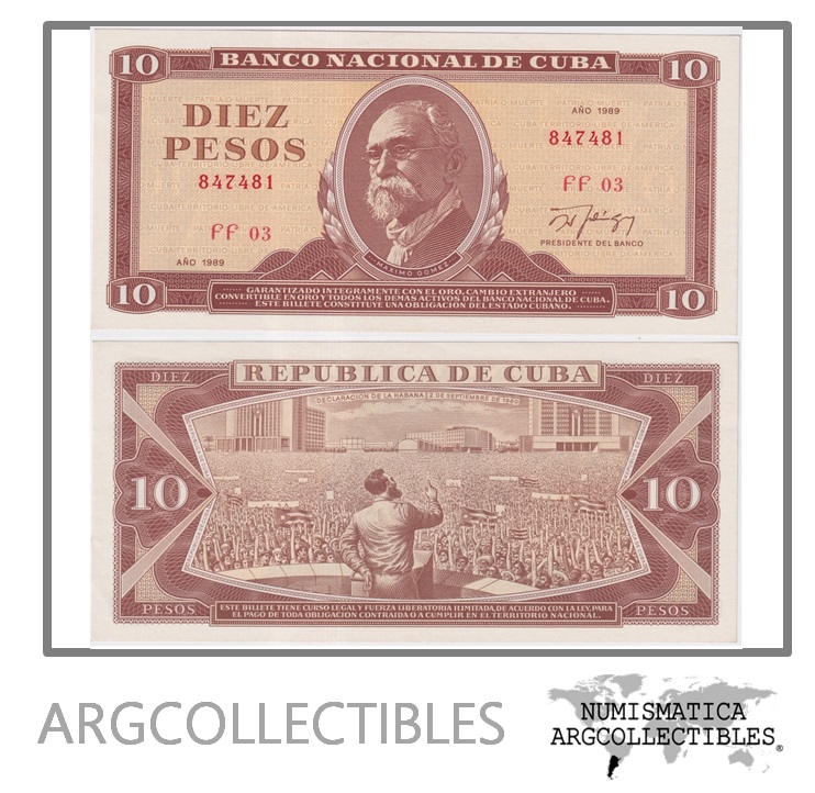 Cuba Billete 10 Pesos 1989 P-104d UNC