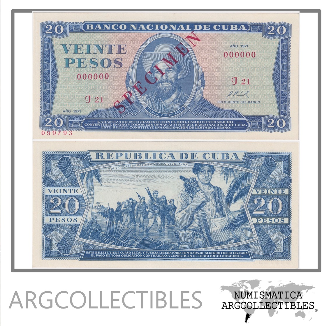 Cuba Billete 20 Pesos 1971 P-105s UNC (Specimen)