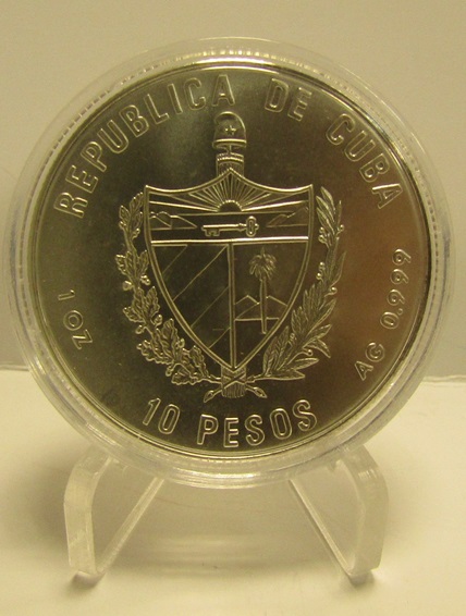 Cuba Moneda 10 Pesos 1991 Hermanos Pinzon / Plata 999- 1 Onza KM-327 Proof