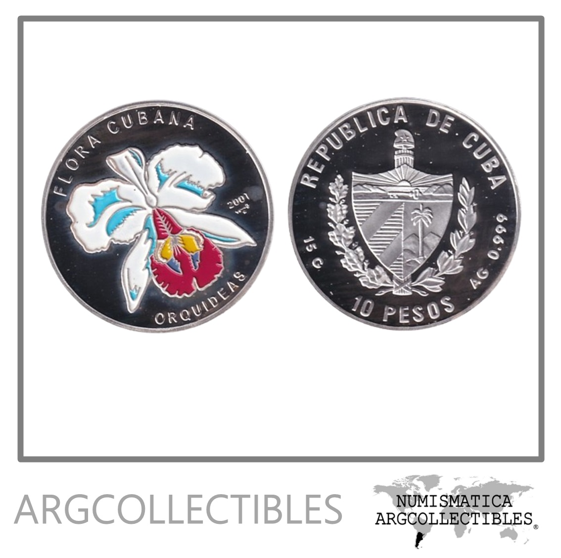 Cuba Moneda 10 Pesos 2001 Plata 999-15gr Orquideas Blancas KM-769 Proof