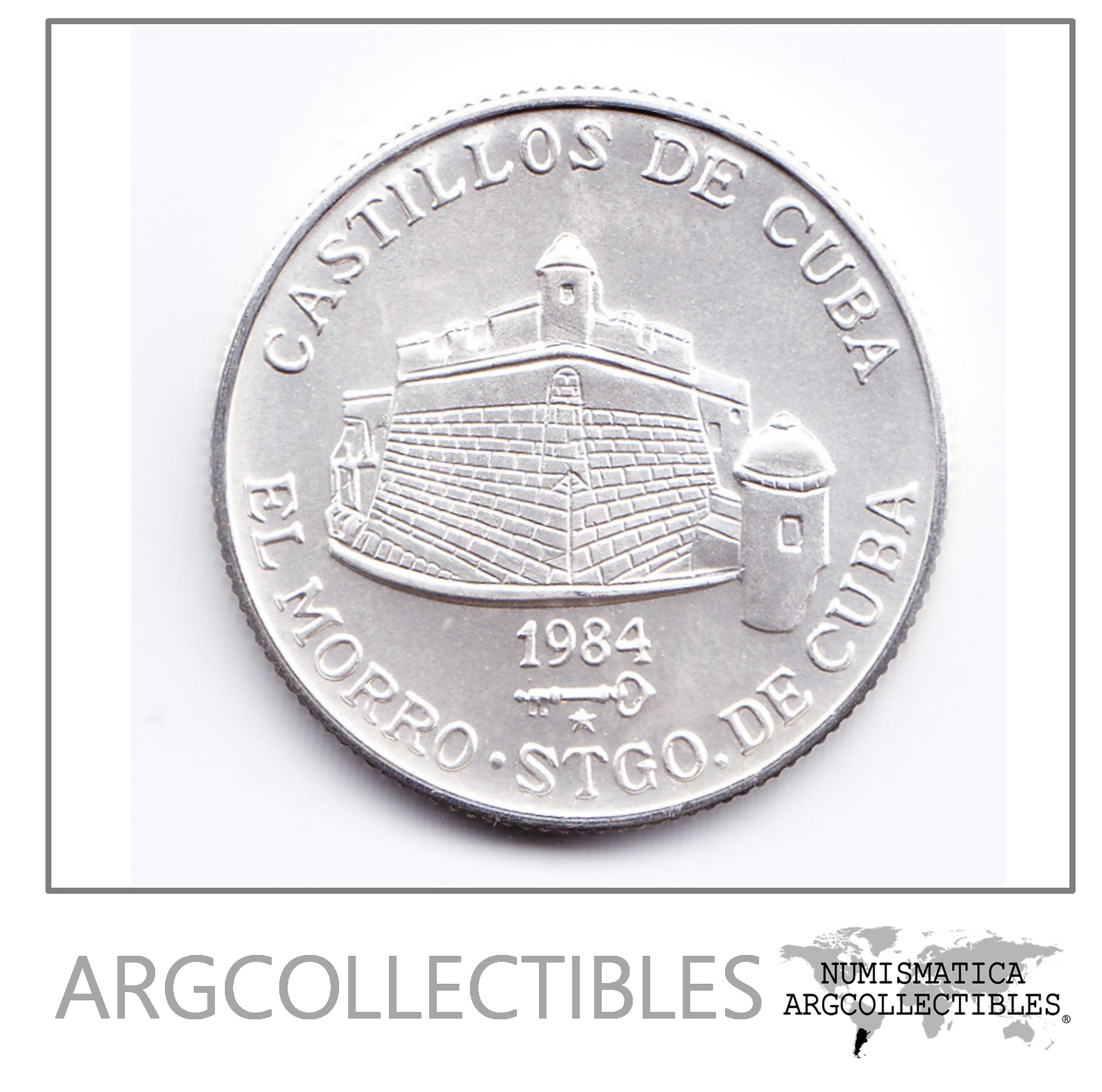Cuba Moneda 5 Pesos Plata 1984 Castillo de Cuba El Morro Santiago De Cuba Unc