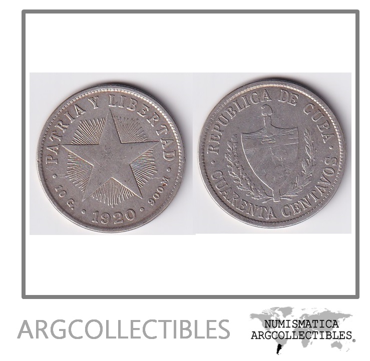 Cuba Moneda De Plata 40 Centavos 1920 Estrella Radiante Vf