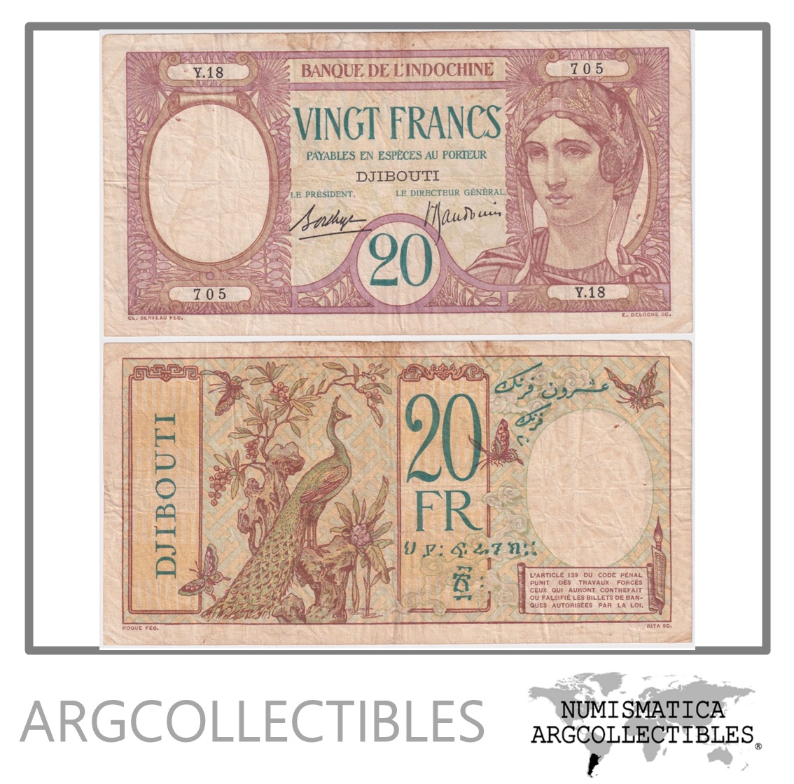Djibouti Billete 20 Francos 1928 P-7a(2) VF