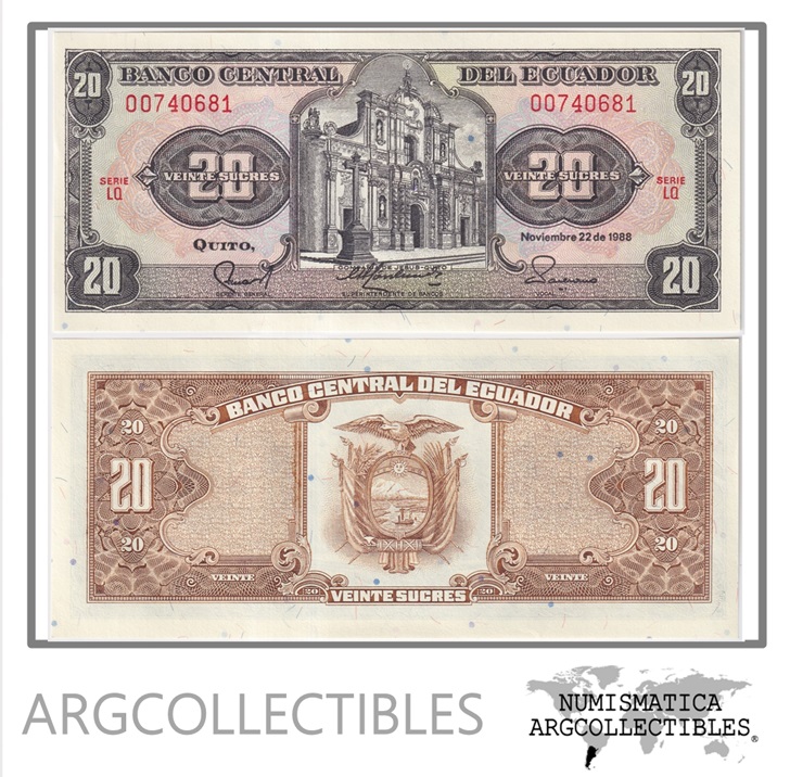 Ecuador Billete 20 Sucres 1988 P-121a UNC (Serie LQ)