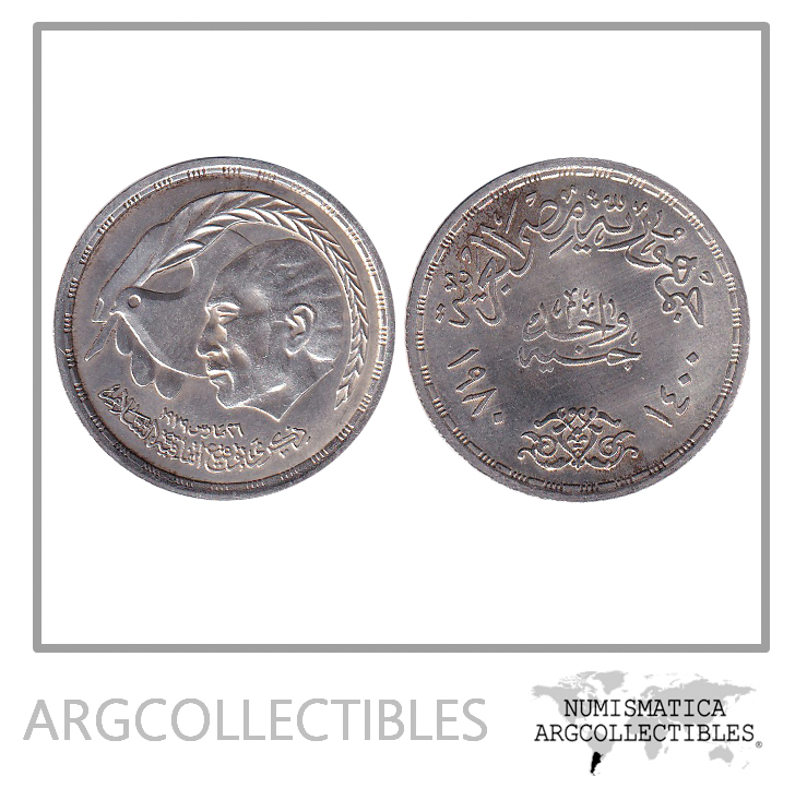 Egipto Moneda 1 Libra 1980 Plata 720 Km-508 Tratado de paz con Israel UNC