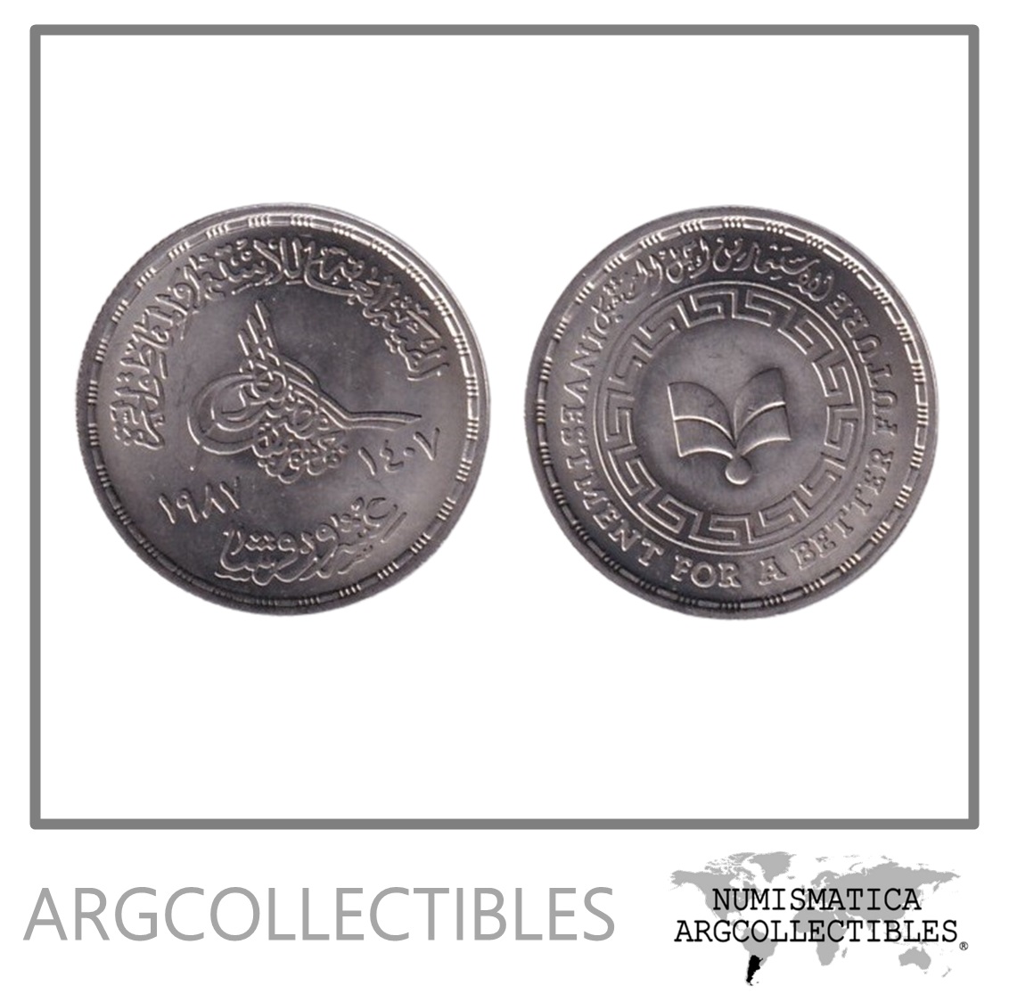 Egipto Moneda 20 Piastres 1987 Gafi Niquel KM-652 UNC