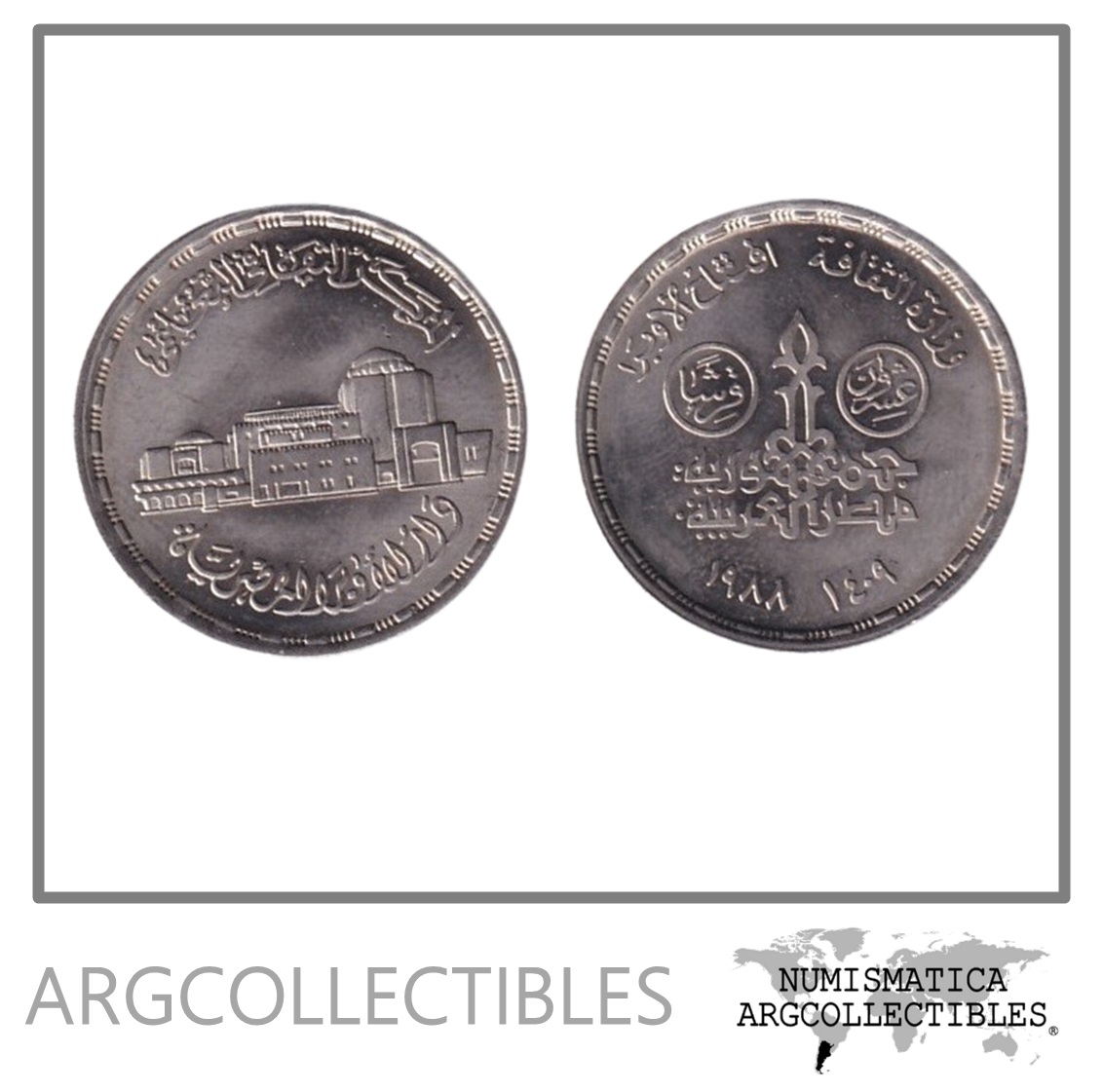Egipto Moneda 20 Piastres 1988 Opera de El Cairo Niquel KM-650 UNC