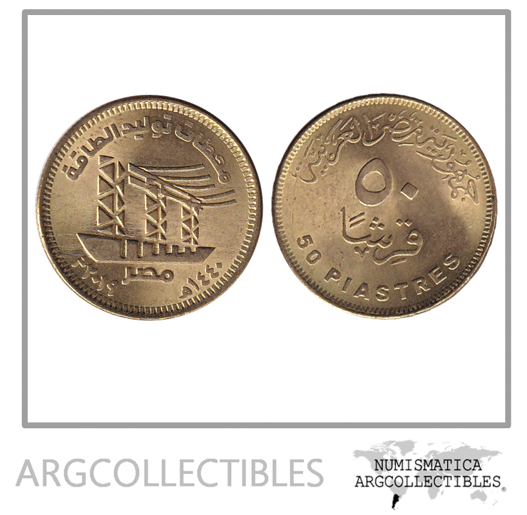 Egipto Moneda 50 Piastres 2019 Laton Central Electrica UNC