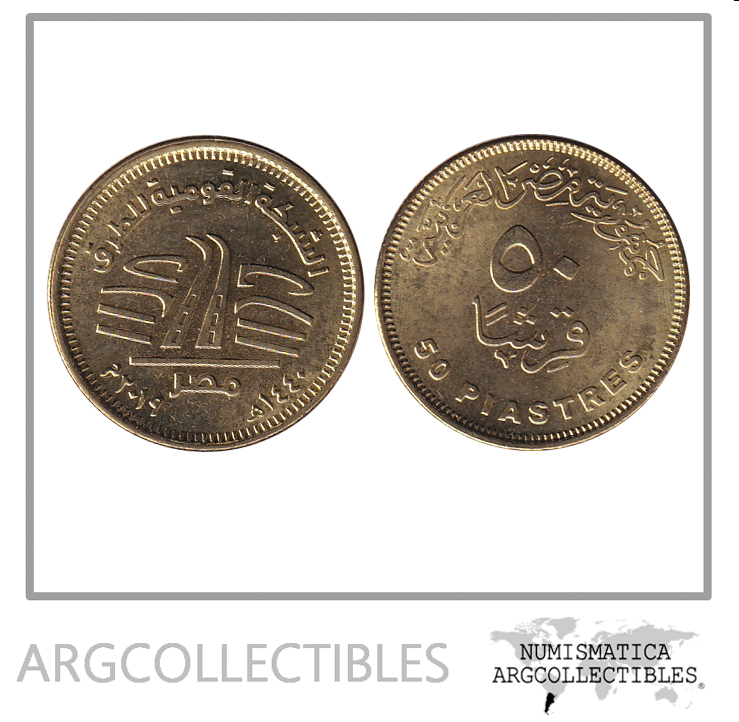 Egipto Moneda 50 Piastres 2019 Laton Red Nacional de Rutas UNC